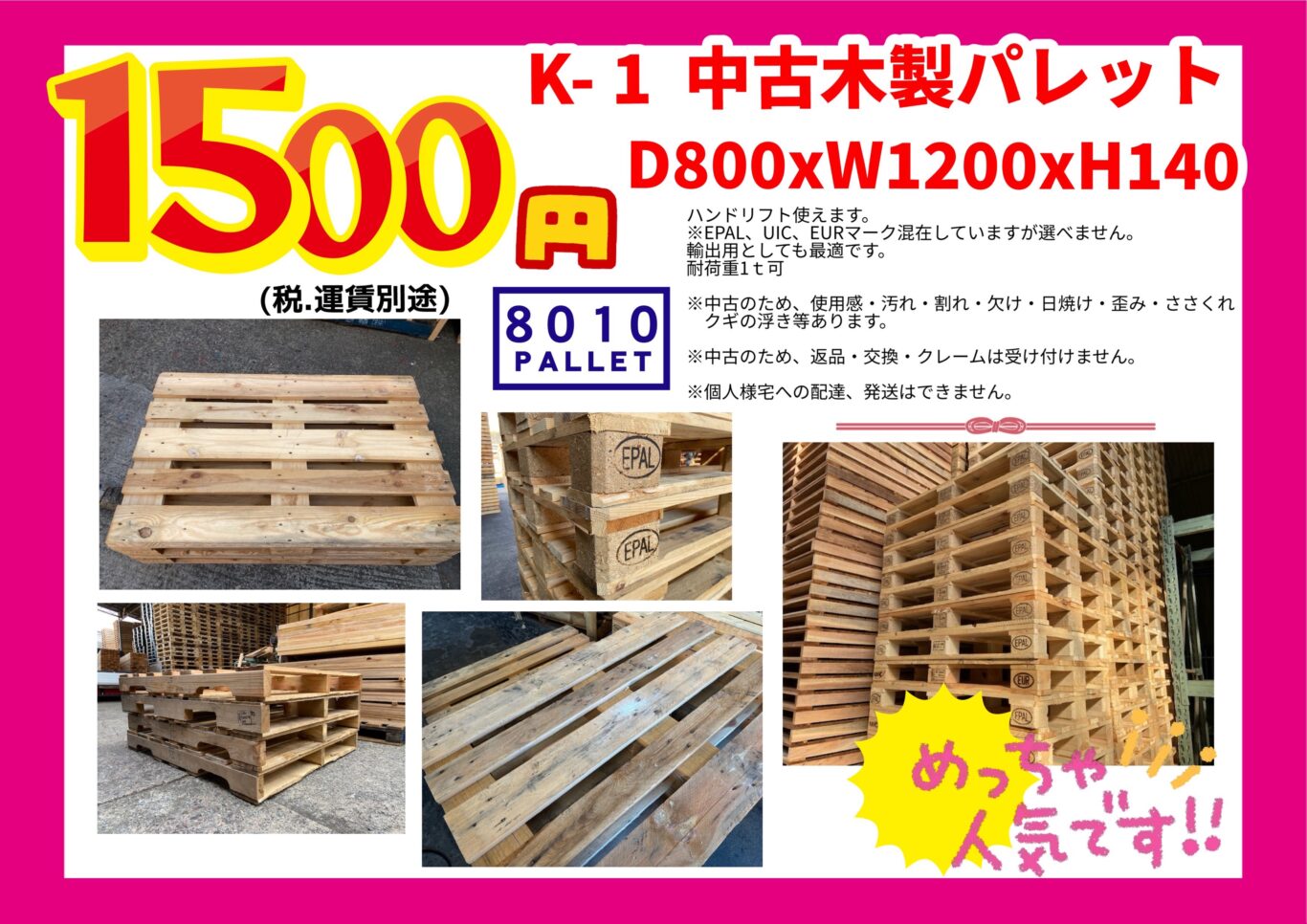 K-1 中古木製パレット D800xW1200xH140 片面仕様 四方差し ユーロタイプ Aランクハンドリフト使えます。※EPAL、UIC、EURマーク混在していますが選べません。輸出用としても最適です。耐荷重1t可※中古のため、汚れ・割れ・欠け等あります。※個人様宅への配達、発送はできません。株式会社8010 (パレット)パレット買取業界最大手!高値買取・激安販売!〒581-0039大阪府八尾市太田新町 1-290TEL: 072-949-0100FAX: 072-949-4841:info@8010-co.jpHP: https://8010-co.jp/■営業時間 8:00~17:00/土日祝定休