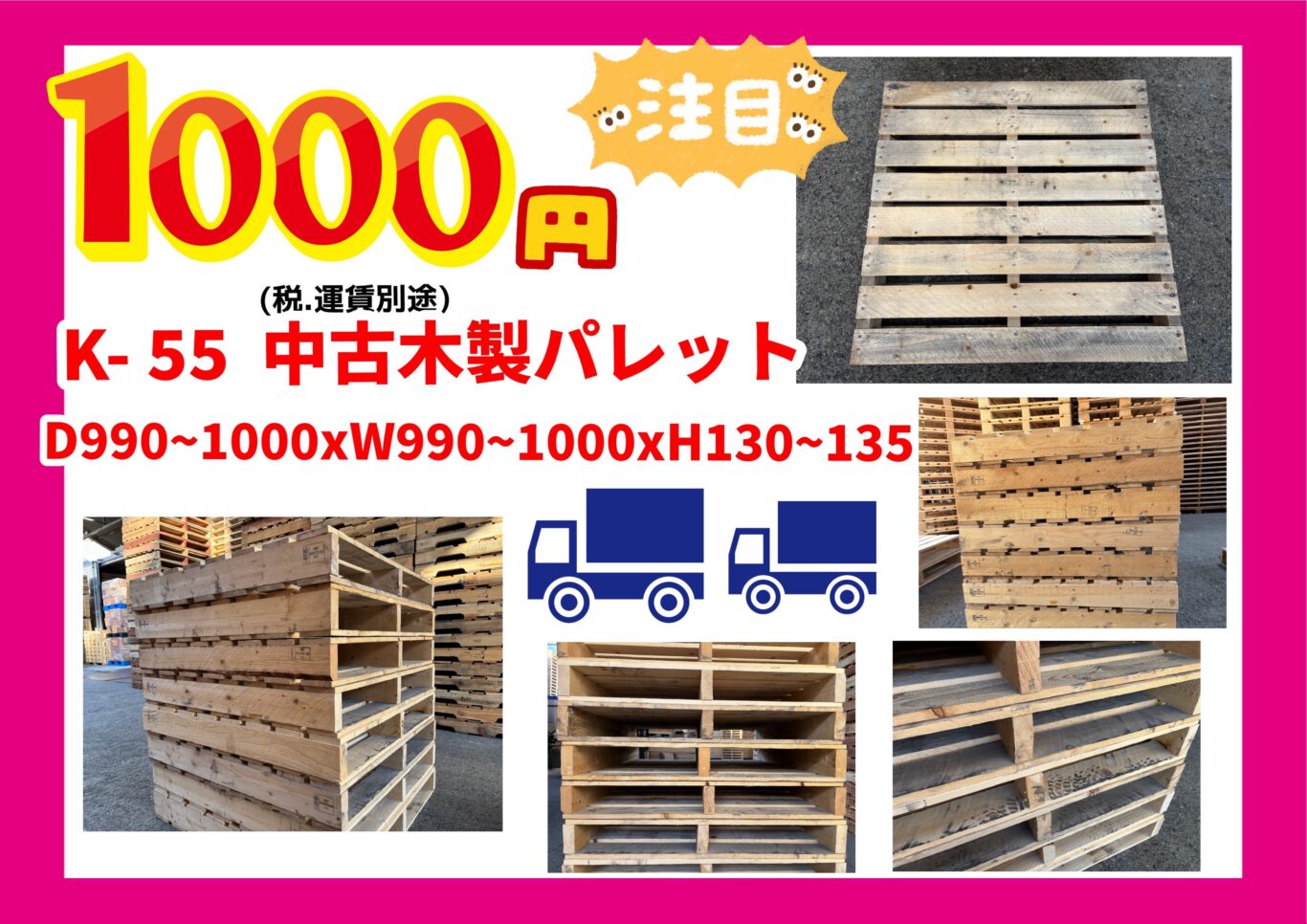 K-55 中古木製パレット D990~1000xW990~1000xH130~135