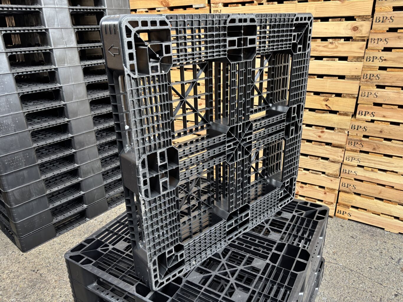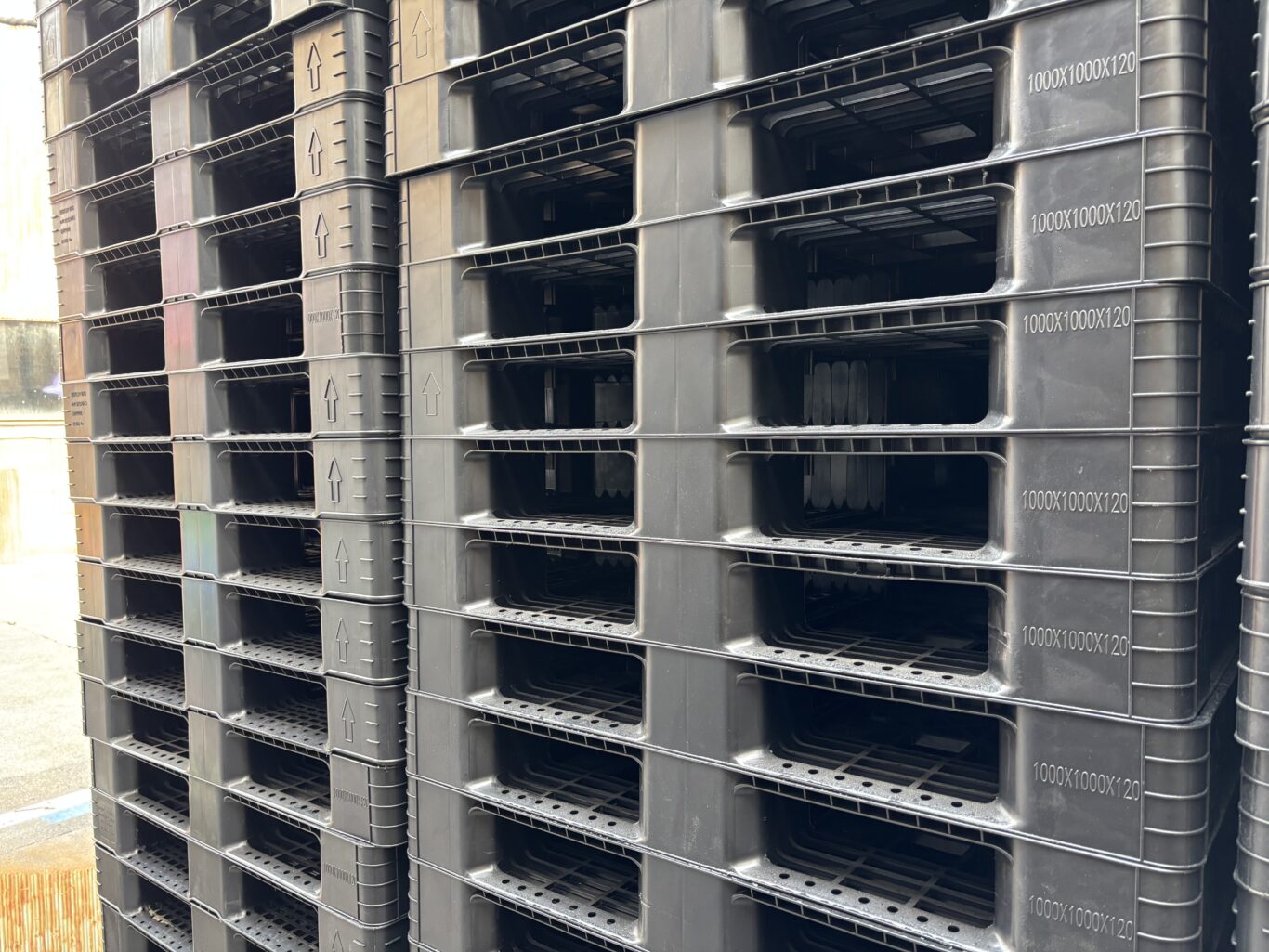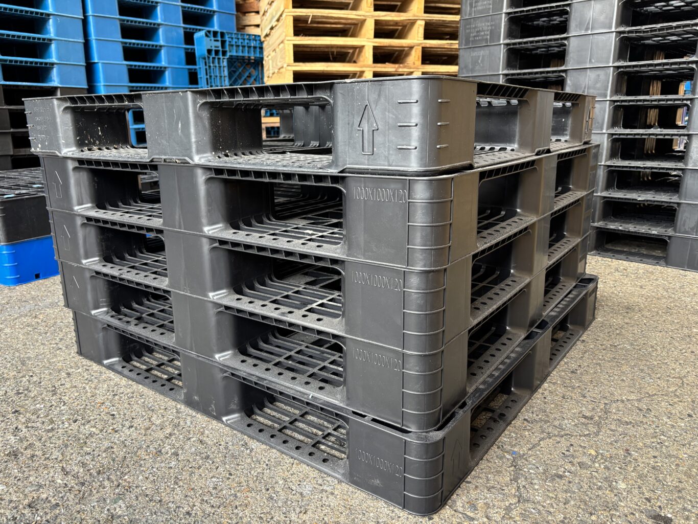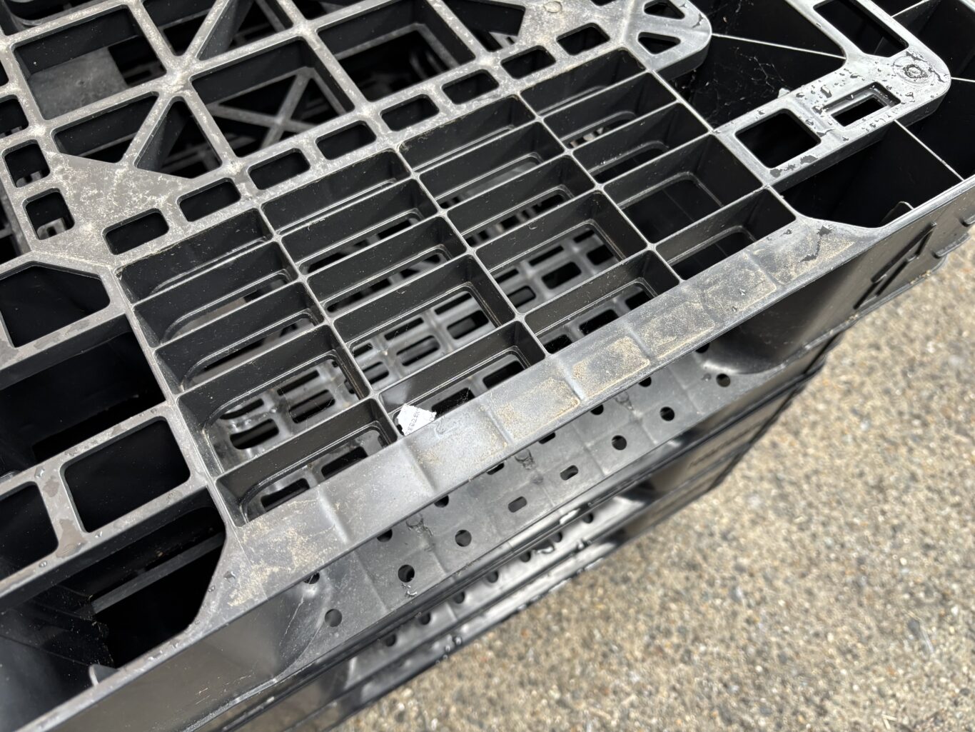 <在庫僅少>P-3 中古プラ(樹脂)パレット D1000xW1000xH120 片面仕様 四方差し